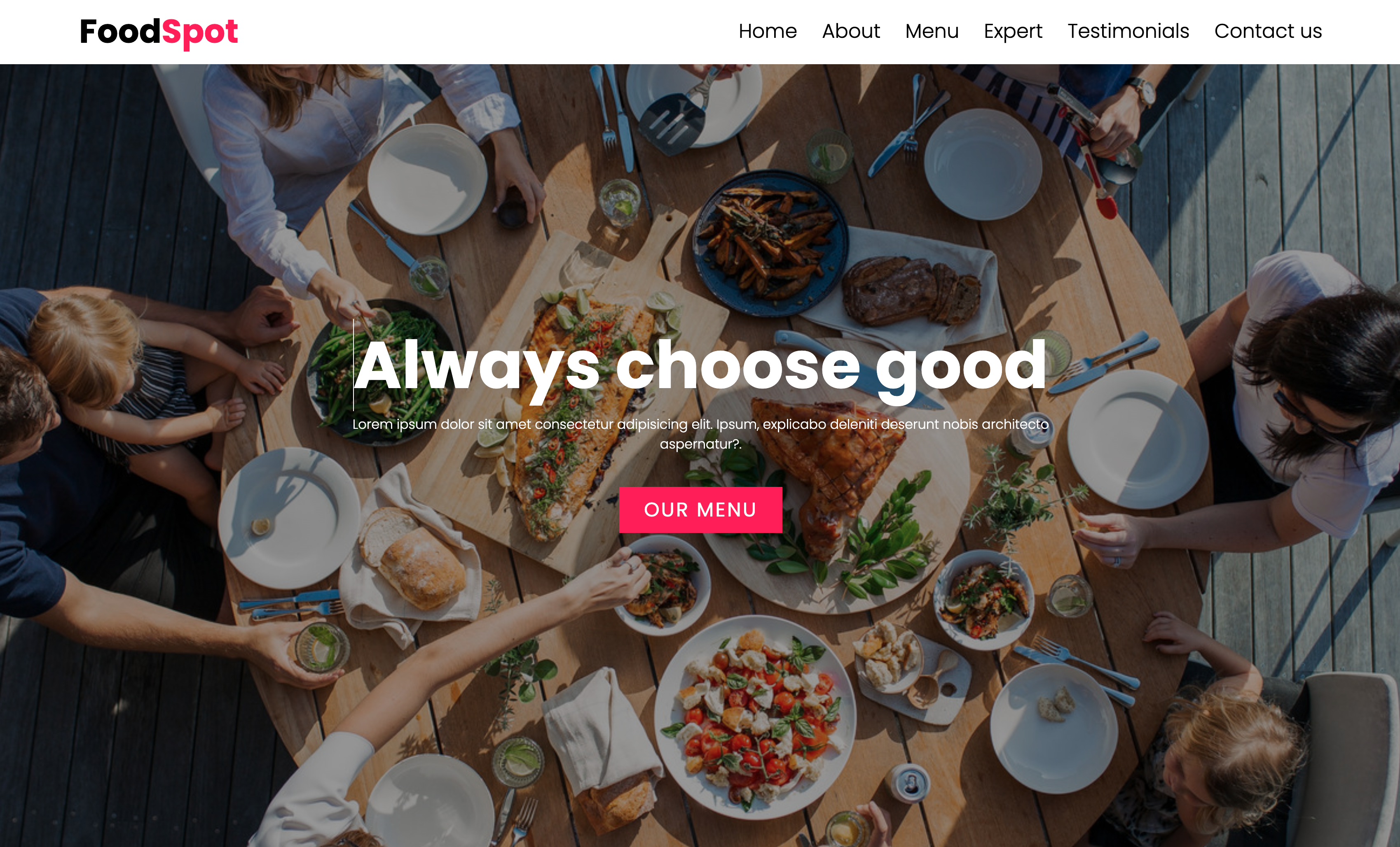 Responsive restaurant site built with HTML and CSS. Features menu sections, chef intros, and customer reviews.
